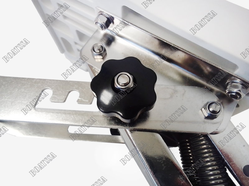 The adjustable outboard bracket with plastic pad and Inox 316, is suitable for engines up to 40kg/20HP. It’s a transom-mounted bracket that provides a platform for mounting a small outboard motor on a boat that doesn’t have a built-in motor mount. Made of mirror polished stainless steel; drop-down system with intermediate adjustment with a comfortable handle; brackets are fitted with a highly-resistant pad. Durable over time. *N*